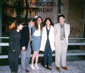 Quello bello ,alto, sorridente e sconvolto tutto sulla destra sono io...pochi minuti dopo la fine della discussione della tesi il 21 Marzo 1997. Insieme a me,tra gli altri,c'e' Daniele !! Ci siamo laureati lo stesso giorno.E probabilmente lavoreremo insieme nel prossimo futuro...un saluto anche a Daniele di Vezzano Ligure.